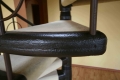 In einer Wohnung in Stuttgart: Die Wendeltreppe (von Wohnbereich in Gallerie/1Stockwerk) ist vom BJ 1984. Material: Metall mit Teppich, Geländer = Metallstäbe Entlang der Gallerie ca. 5m Geländerstäbe. Die Stufen sind eingefasst in braunes Plastik.