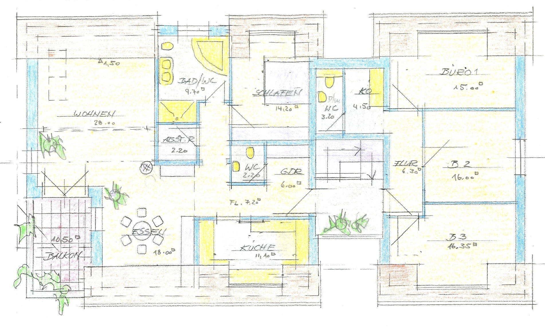Wohn- und Bürofläche ca. 330 qm. Geschoßhöhe 1 1/2 (Erdgeschoß mit ausgebautem Dachgeschoß)