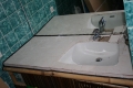 Es ist eine gefliesste Waschtischplatte mit Waschbecken vorhanden die jedoch einfach an zwei Metallwinkeln an der Wand befestigt ist, diese Platte soll nicht überfliesst sondern einfach komplett ersetzt werden da dies einfacher erscheint. Alte Platte abschrauben, WEDI Platte 1,18 m x 0,56 m (o.ä nach Empfehlung) auf die vorhandenen Metallwinkel aufschrauben , Aussparung für neues Waschbecken (56cm) ausschneiden , Waschbecken einbauen, anschliessen und fliesen.