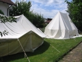 Die Zelthäute sind aus Baumwolle (100%, ca. 330 g/qm, naturell-weiß).