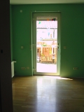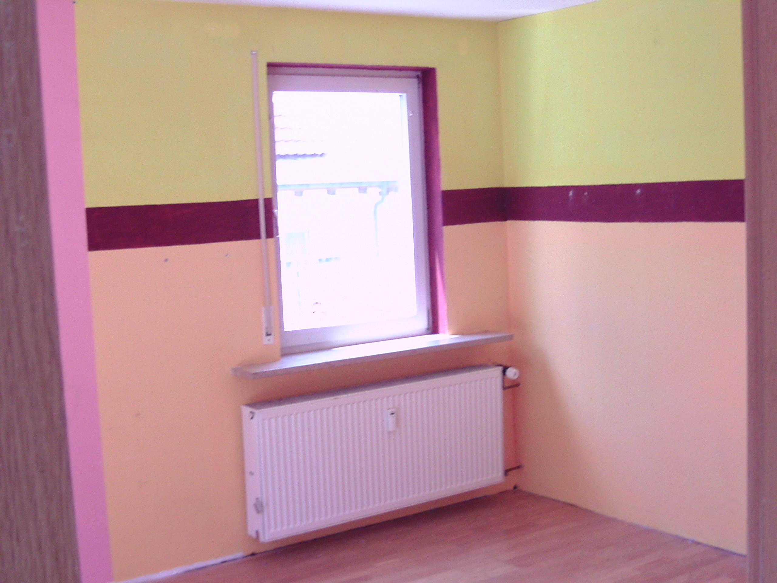 Dübel entfernen, Löcher zugipsen. Bei etwa der Hälfte der Wohnfläche muss die alte Tapete entfernt und mit Rauhfaser neu tapeziert und grundiert werden. Anschliessend weissen aller Wände und Decken.