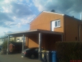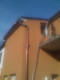 Am Carport (9 x 5 m, siehe Bild) soll eine Regenrinne (250 mm) montiert und mit dem bestehenden Fallrohr verbunden werden.