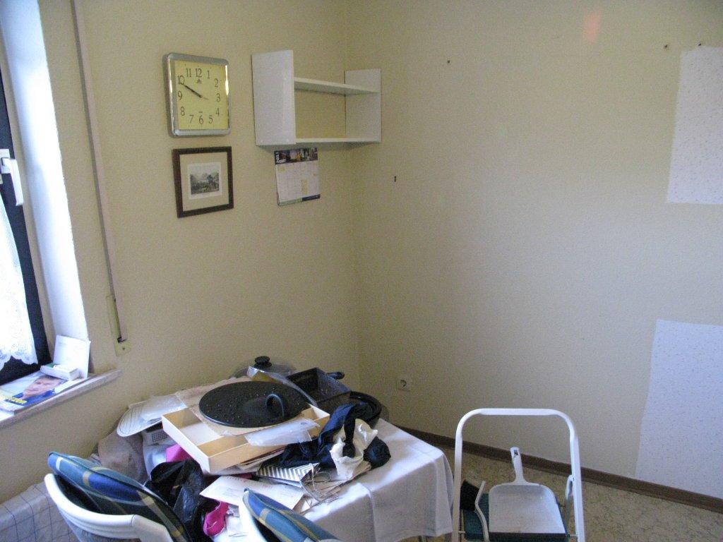 - Rauhfaser tapezieren und deckend weiß streichen, vorher bestehende Tapeten entfernen und entsorgen