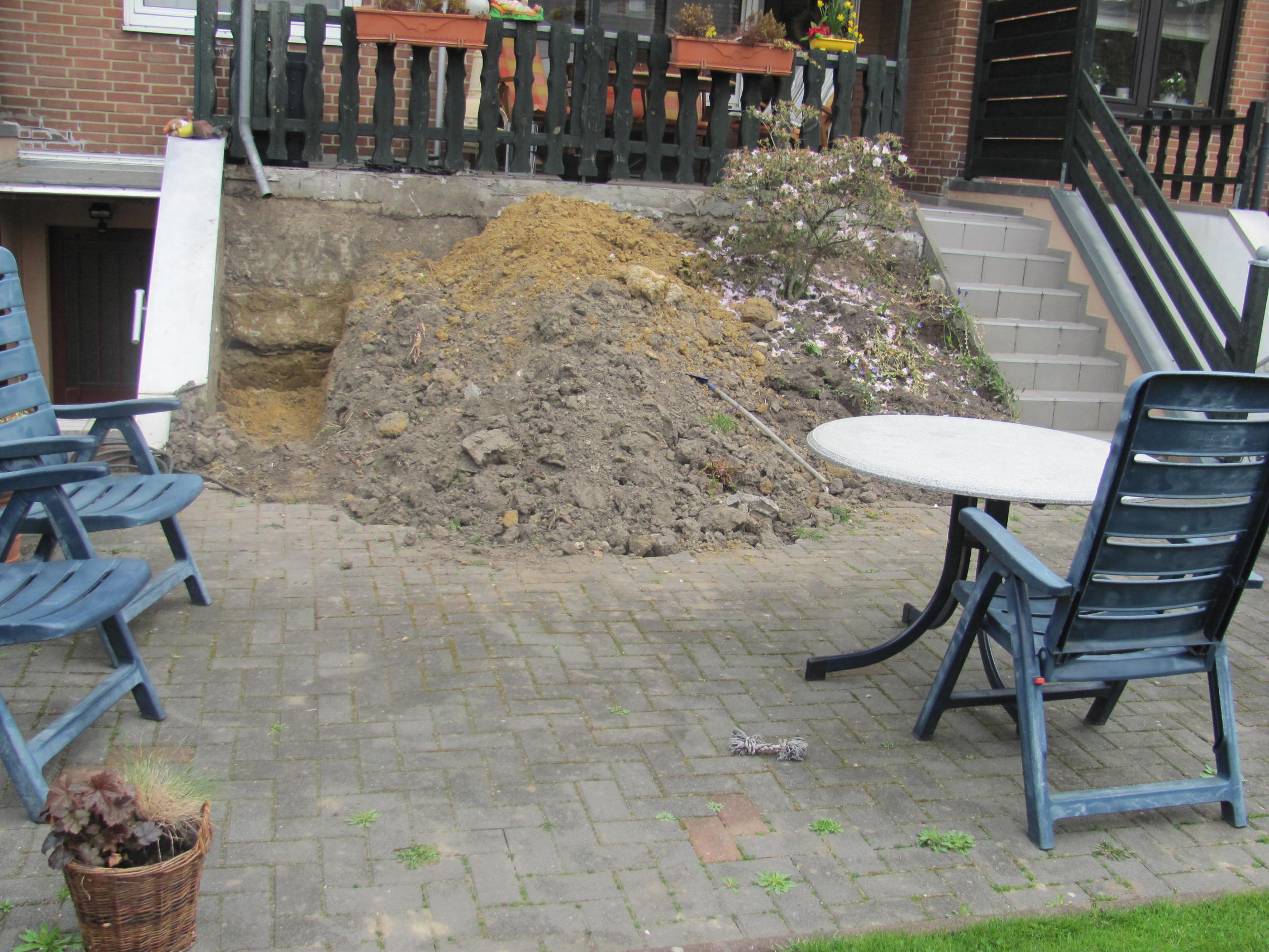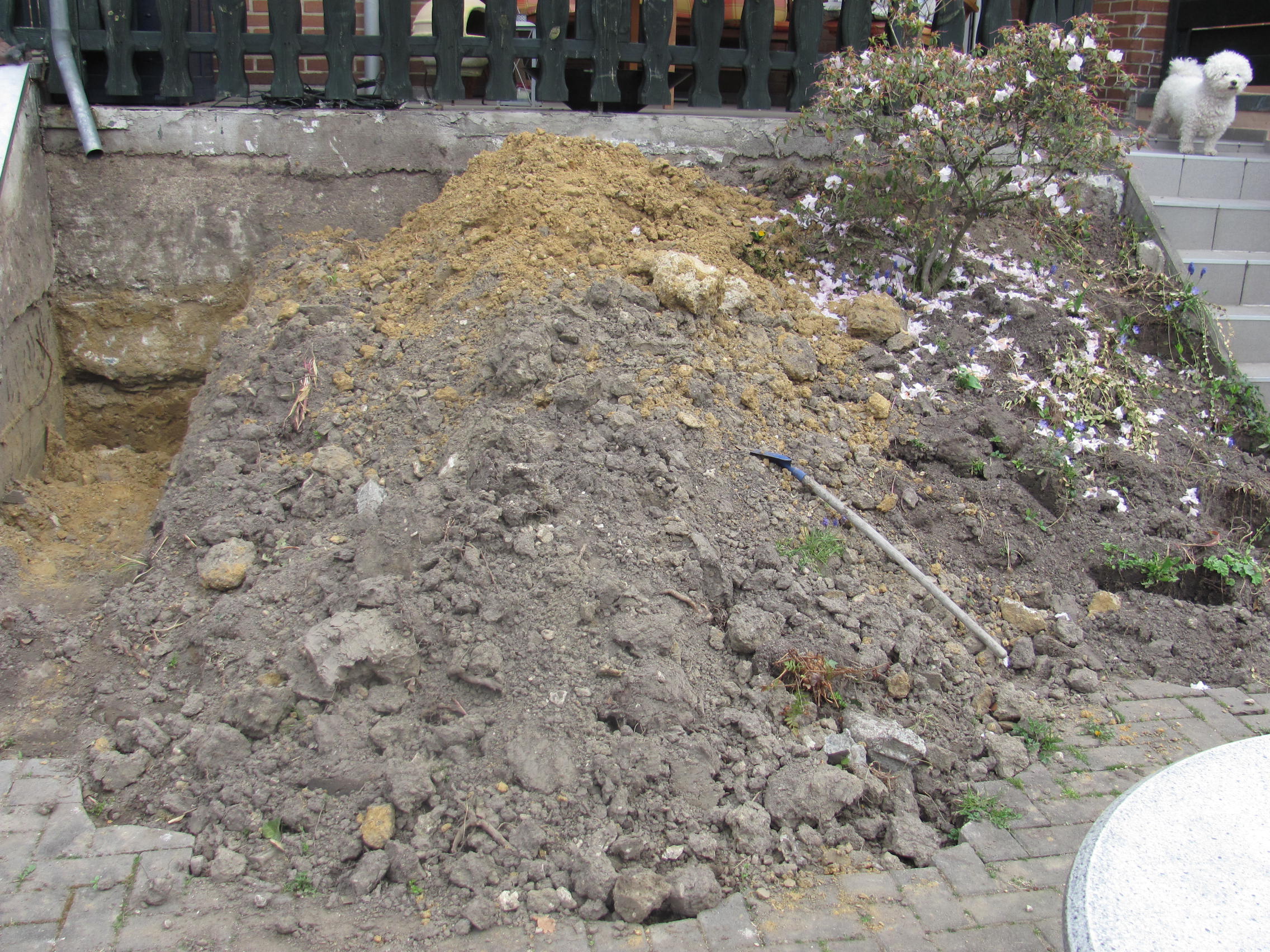 Es sind ca 5 kubikmeter von einem Erdhügel abzutragen und eine Flächen von 20 qm (ca 4 kubikmeter) auszukoffern als Vorbereitung von Plasterarbeiten. Erdreich kann durch das Gartentor entsorgt werden. Länge des Gartens ca. 15 Meter.