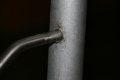 Auftrag ist das erneute Verschweißen des Pfostens mit den Edelstahlstäben, die jeweils in einem Bohrloch in dem Rundstahlpfosten eingelassen sind.