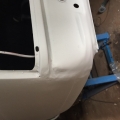 Die Karosserie wurde komplett geschweißt (von einem Karosseriebauer). Farbe und Grundierung sind vorhanden. Alle Anbauteile wie Motorhaube, Türen etc. sind bereits fertig lackiert, es geht also ausschließlich um die Karosserie. Innenraum und Unterboden wurden ebenfalls bereits lackiert.