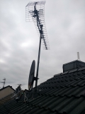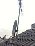 Auf dem Dach unseres Hauses befindet sich noch ein Antennenmast, auf welchem eine nicht mehr gebrauchte Antenne und eine Satellitenschüssel montiert ist.