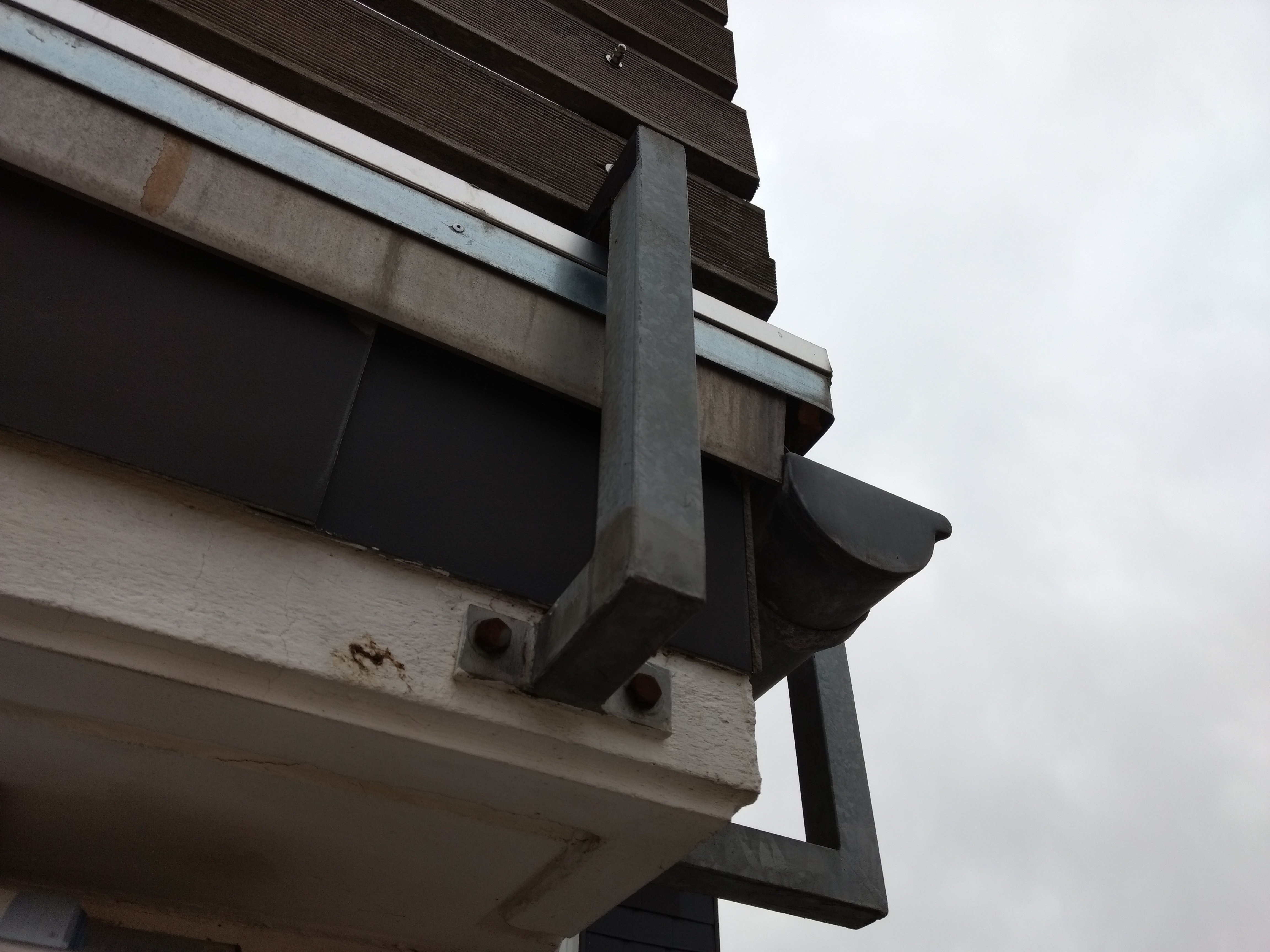 | Die Dachrinne (siehe erstes Bild) muss um ca. 10cm verlängert werden, da Regenwasser von der Dachterasse an der Außenwand herunterläuft |