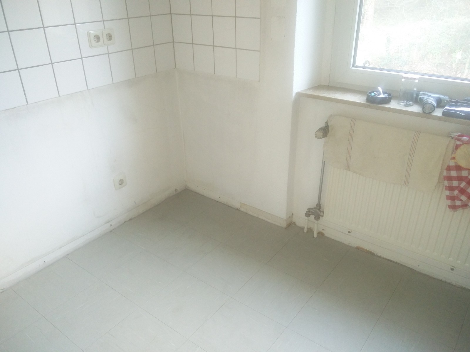 | Renovierung Küche Fläche : 7,28 m² (2,41 m X 3,02 m) Deckenhöhe : 3,26 m Tapezierarbeiten : 1. alte Raufaser entfernen 2. kleinere Dübellöcher verschließen 3. Raufaser kleben : a) eine ganze Wand (2,41 m X 3,26 m) b) Fenster- und Heizungswand stückweise c) Restwände über dem Fliesenspiegel und Türe (ca. 5,40 m Länge) Anstreicharbeiten : 1. Decke einmal dünn mit Feinspachtel glatt abziehen 2. Decke und Raufaser weiß streichen 3. Wände unterhalb des Fliesenspiegels weiß streichen mit wasserabweisender Farbe Bodenverlegung : Klick-Vinyl-Bodenplatten verlegen mit Randleisten (Bodenplatten, Trittschallisolierung, Randleisten und Innen- und Außenverbundecken vorhanden) Bei Zufriedenheit sind weitere Arbeiten in der übrigen Wohnung in Aussicht. |