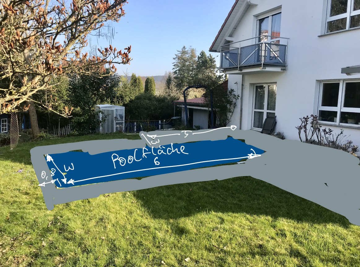 Wir wollen uns einen Pool anschaffen und in diesem Rahmen wollen wir auch unsere Terasse neu neu pflastern und vergrößern von ca 30² auf ca 50 m² Untergrund der Terasse ist bisher verdichtet und mit Kies Zu vergrößernde Fläche ist bisher Rasen Platten sind aus Feinsteinzeug vorgesehen (s. Link; noch zu bestimmen) https://www.jonastone.de/w/anwendung/terrassenplatten-aus-feinsteinzeug.html |