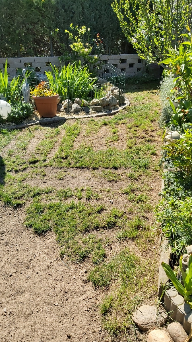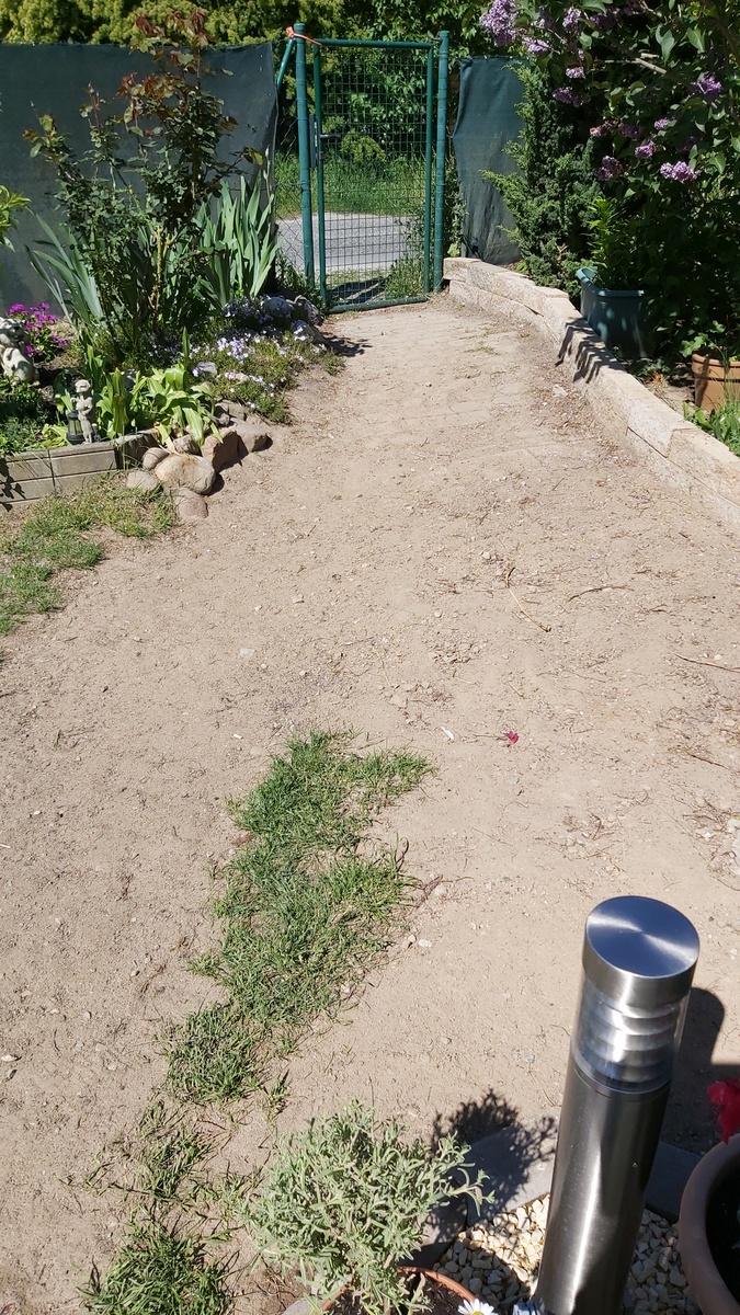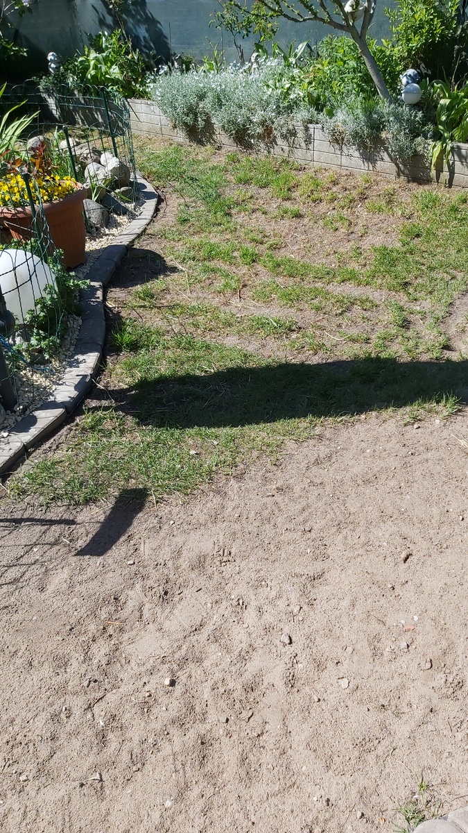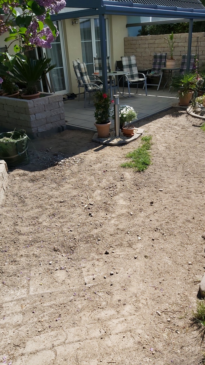 - Kauf und verlegen von 20- 25qm Rollrasen, Boden aufarbeiten, ca.18 Bodenplatten 40x40cm integrieren (sind vorhanden).